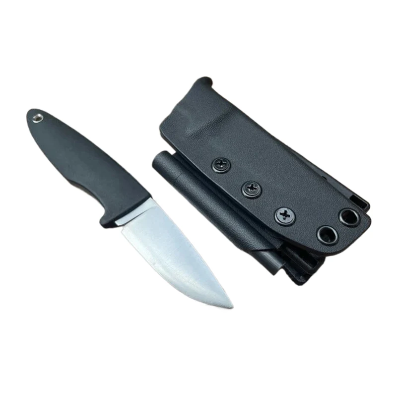 تم أيضًا تشكيل الشفرة الثابتة لغلاف السكين الأفقي لتناسب تمامًا، مع وضع المقبض الناعم في الاعتبار. شكل غمد كيديكس مثالي أيضًا لارتداء السكين الصغير حول الرقبة كسكين للرقبة.