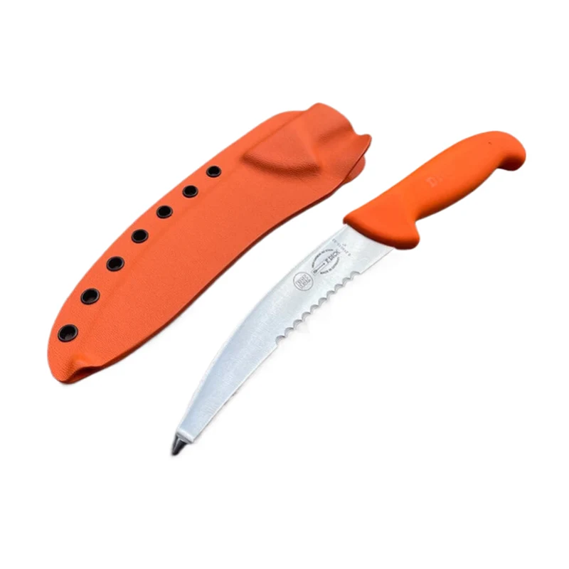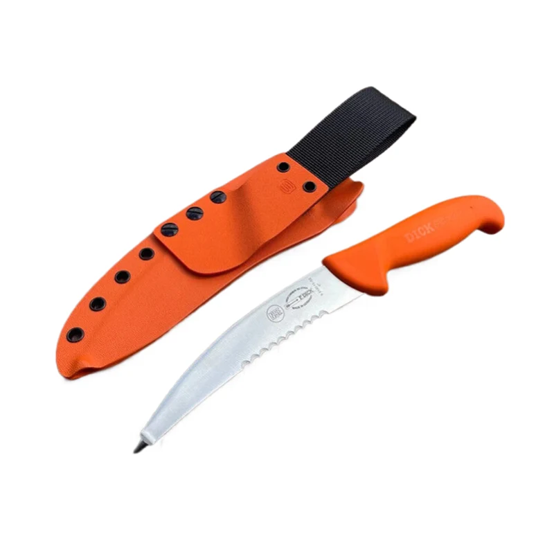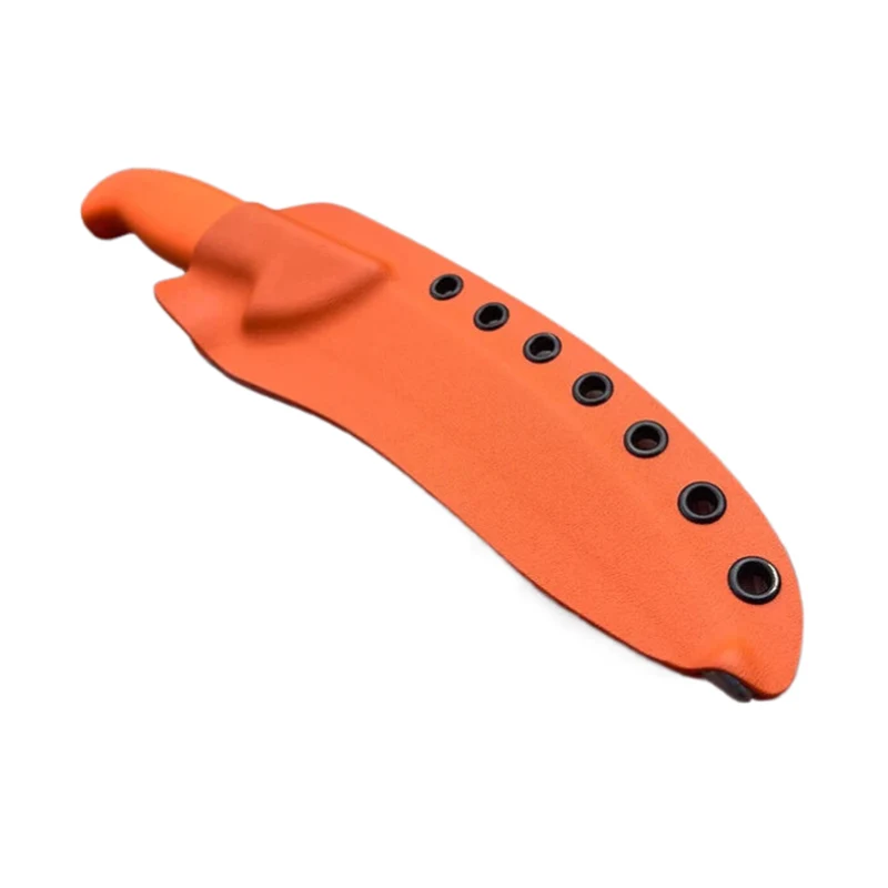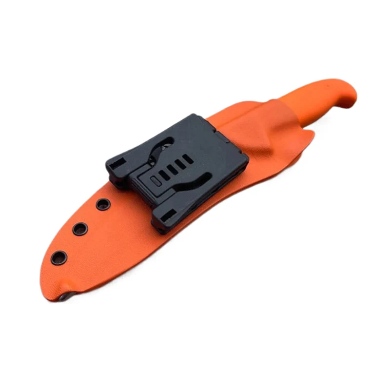 سكين الصيد ذو الغمد متوفر في ثقوب مفتوحة على جانب واحد. لربط السكين بحزامك بالطريقة الكلاسيكية، أوصي بحزام من النايلون مع حامل كيديكس. مع Multi-Lok، يمكن ارتداؤه أفقيًا أو رأسيًا على الحزام.